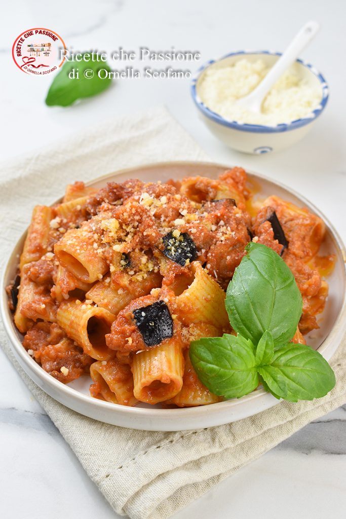 Auch im Ofen überbacken ist sie hervorragend, mit der Zugabe von hartgekochten Eiern und Provola, die Provola kann auch im Topf hinzugefügt werden, wenn man ein noch reichhaltigeres Pasta-Gericht mit Auberginen möchte.