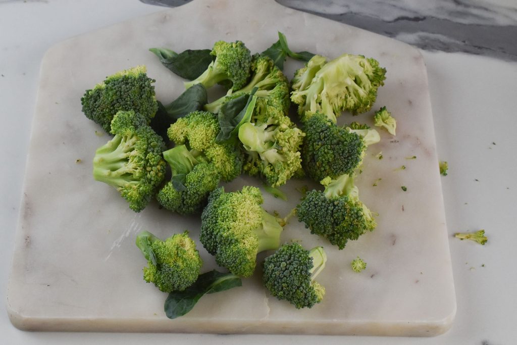 • 2. In der Zwischenzeit reinigen wir den Brokkoli, schneiden ihn in Röschen, verwenden auch einen Teil des zarten Stiels, in Stücke geschnitten und wo möglich geschält. Waschen und abtropfen lassen in einem Sieb.