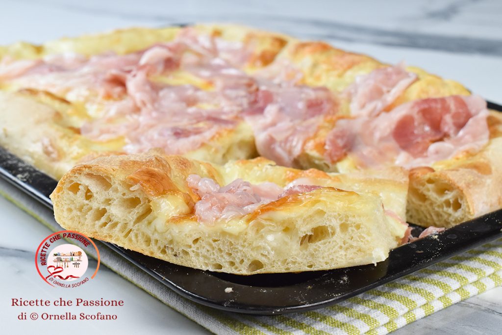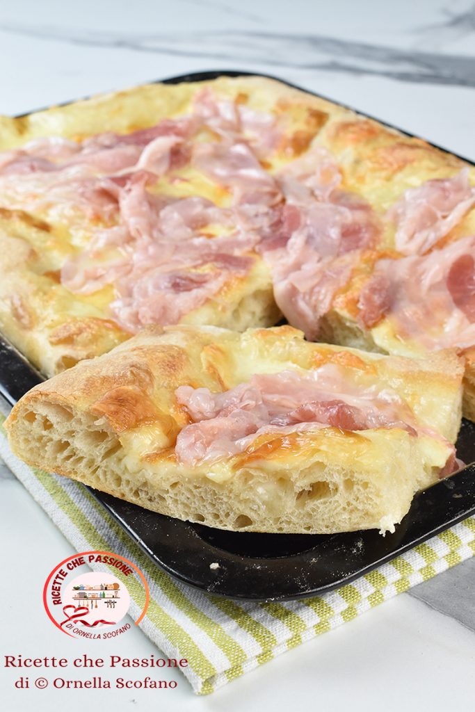 Schritte zur Zubereitung von Pizza in wenigen Stunden mit Speck und geräuchertem Scamorza
