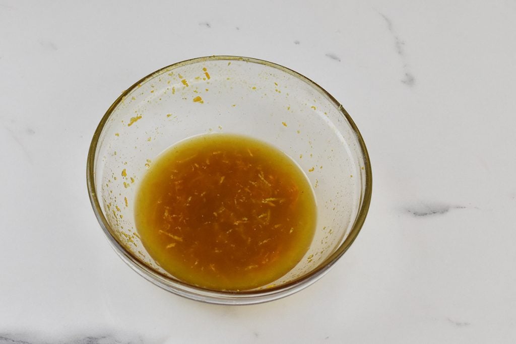 In einer Schüssel reiben wir die Schale von 2 Orangen, nur den orangenen Teil, und einer Zitrone. Wir fügen den Vanilleextrakt, den Honig und den Rum hinzu, mischen und lassen es auch bei Raumtemperatur ziehen.