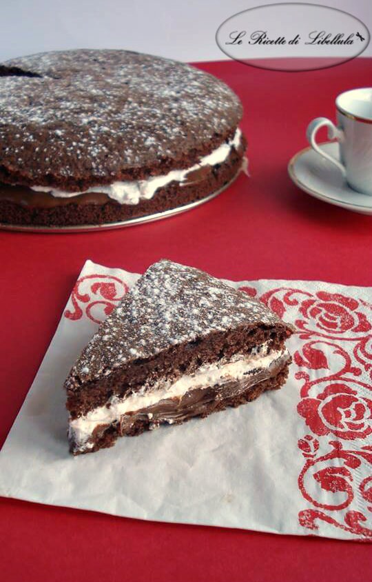 Den Kuchen halbieren, mit einer Schicht Haselnusscreme und darüber mit einer Schicht steif geschlagener Sahne füllen.