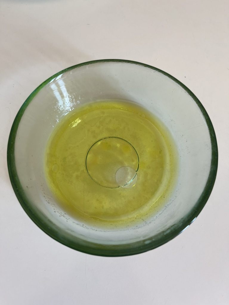 In der Zwischenzeit bereiten wir in einer Schüssel unsere Emulsion vor, die zur Marinierung dient. Also fügen wir das Öl, den Essig und das Salz sowie den Saft einer halben Zitrone hinzu und emulgieren alles gut mit einer Gabel.