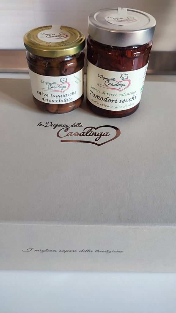 Der streichfähige Käse, cremig und leicht säuerlich, schafft eine einhüllende Basis, die die intensiven und charakteristischen Aromen der Taggiasca-Oliven, fruchtig und aromatisch, in begrenzter Menge angebaut, und der getrockneten Tomaten, San Marzano Tomaten aus Salento, Grundpfeiler der Tradition, die an authentische Geschmäcker und alte Atmosphären erinnern, beide von La Dispensa della Casalinga binden.