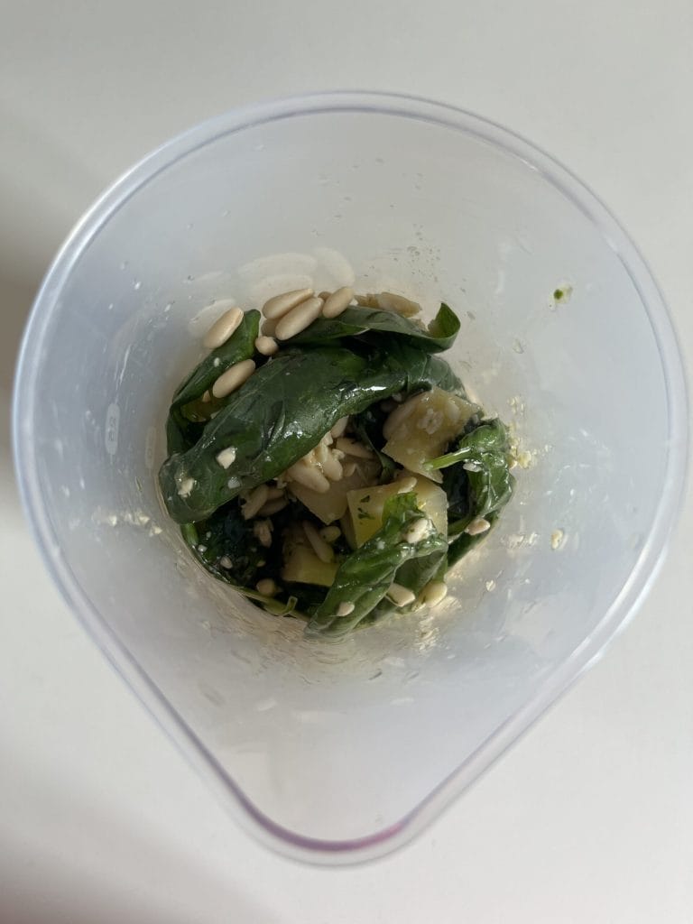 Lassen Sie uns nun das einfache Verfahren ansehen. Tatsächlich sieht das echte Rezept für das Genueser Pesto die Verwendung eines Mörsers vor, aber für diejenigen, die wie ich wenig Zeit zur Verfügung haben, ist dieses Rezept die beste Lösung.