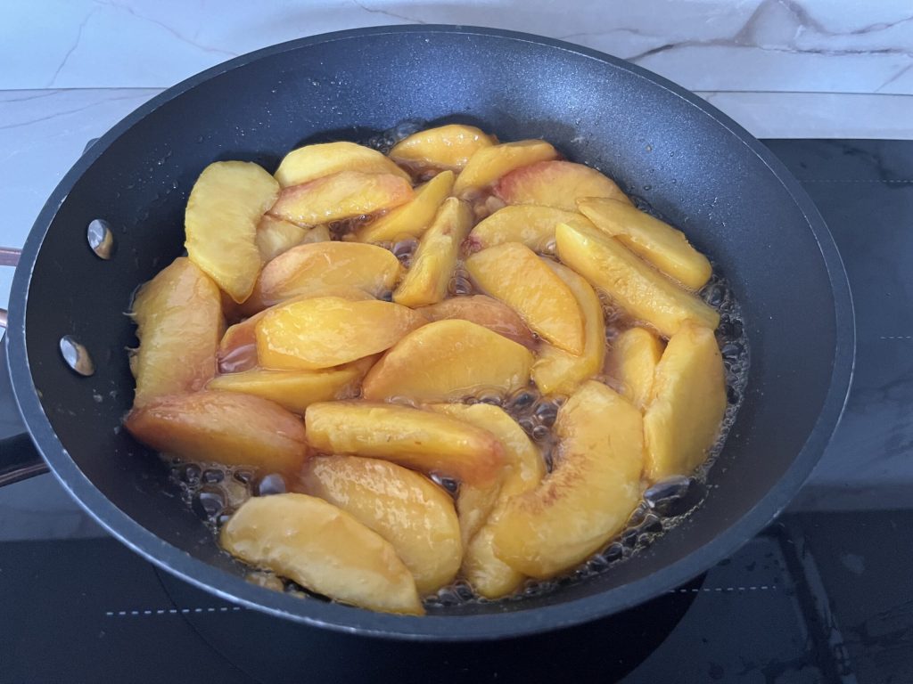 Und die karamellisierten Pfirsiche sind bereit, heiß oder kalt serviert zu werden.
