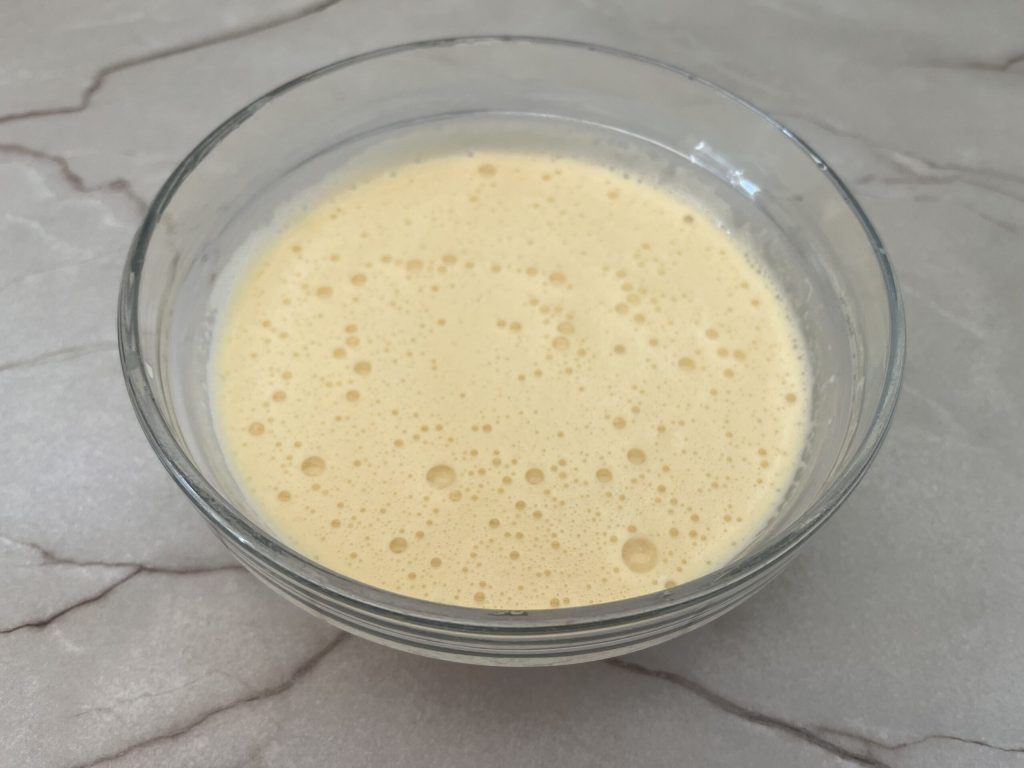 Schlage energisch für einige Minuten mit einem Handbesen bis ein homogener Teig entsteht.