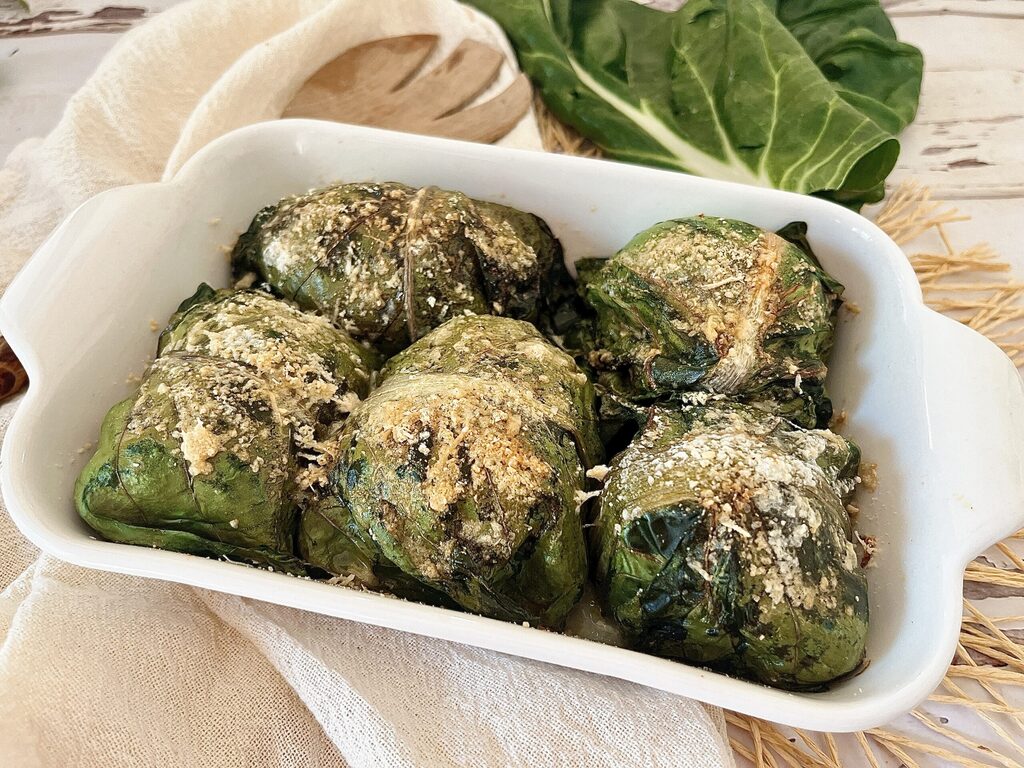 Die Mangold-Rouladen halten sich im Kühlschrank zwei Tage lang. Sie können auch bei Raumtemperatur in der warmen Jahreszeit gegessen werden, während ich im Winter empfehle, sie heiß zu servieren.