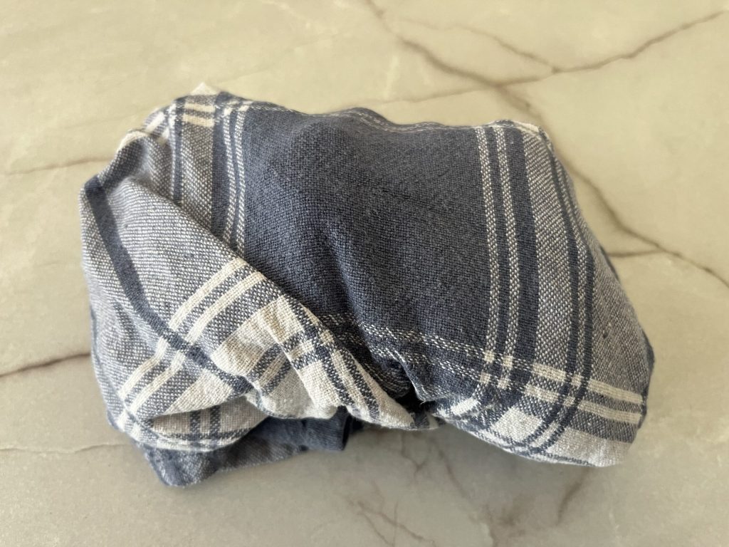 Sobald sie aus der Fritteuse sind, wickle die heißen Maronen in ein sauberes Tuch und schließe das Ganze zu einem „Beutel“.
