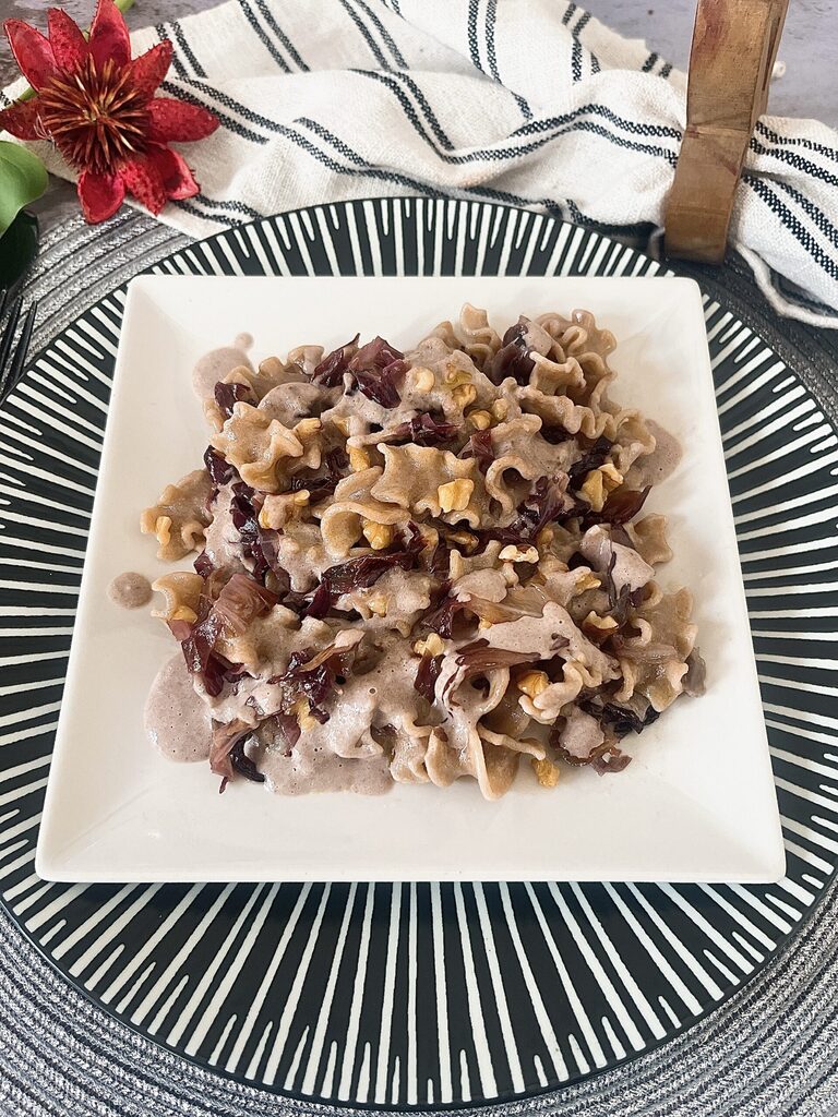 Die Pasta mit Radicchio, Walnüssen und Gorgonzola ist ein schmackhaftes und cremiges Hauptgericht mit einem Hauch von Knusprigkeit.