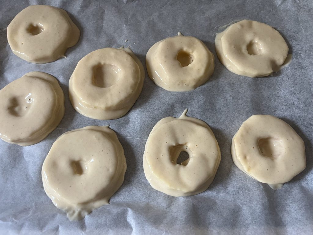 Lege sie, mit Abstand zueinander, auf ein Backblech 29×23, das mit Backpapier ausgelegt ist
