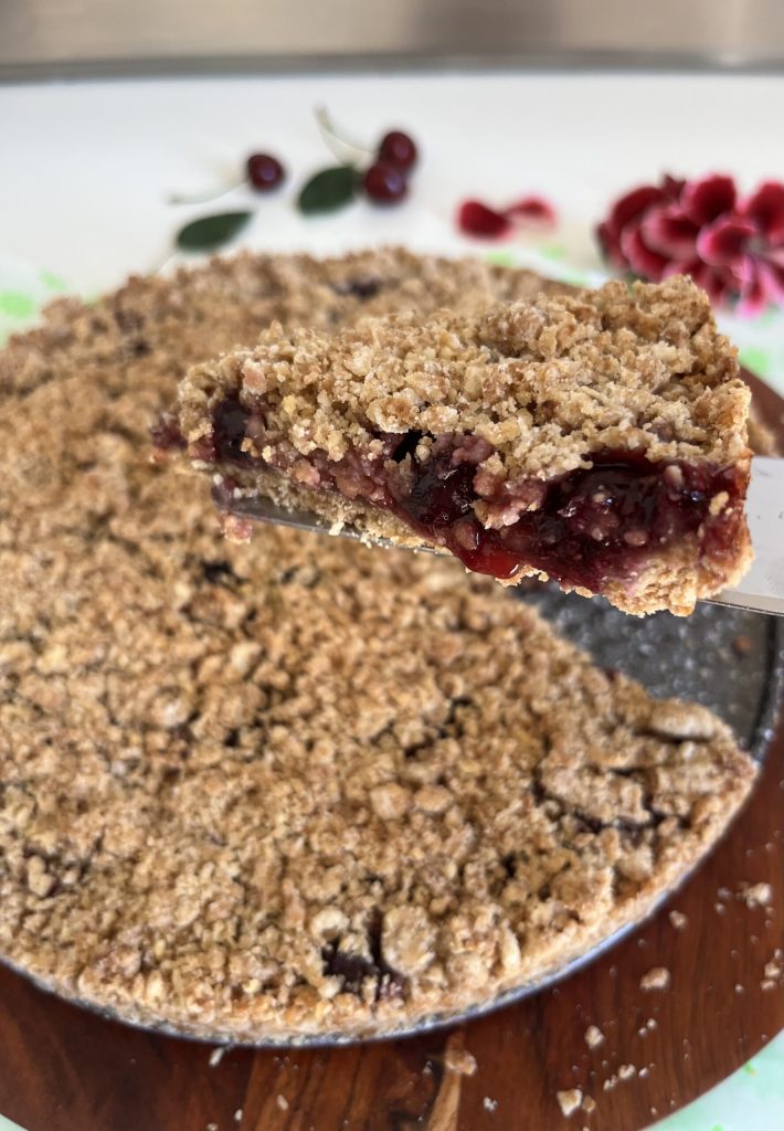 Außen schön knusprig und innen marmeladenartig – sie verwöhnt den Gaumen. In dieser Variante habe ich zur Marmelade frische Blaubeeren gegeben, also glaubt mir: sie ist noch besser!