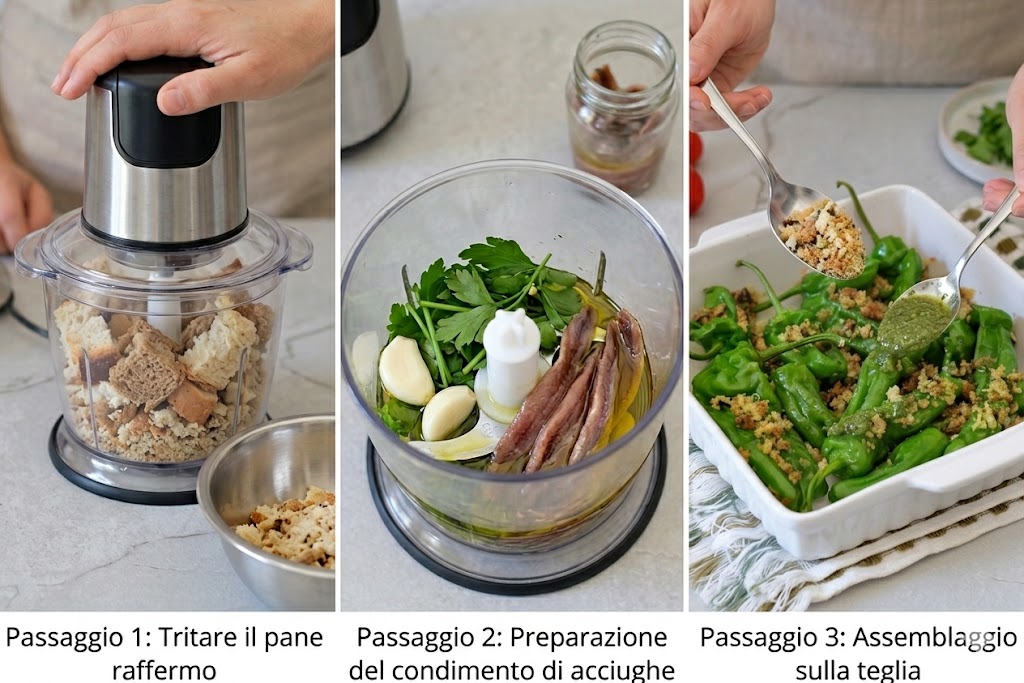 Wie man friggitelli nach neapolitanischer Art in weniger als 15 Minuten zubereitet: Dieses schnelle, aromatische und hochwertige Rezept verwandelt Friggitelli in eine unwiderstehliche Beilage dank einer knusprigen Mischung aus zerkleinertem altbackenem Brot, Sardellen, Knoblauch, Petersilie und extra native Olivenöl, verfeinert mit saftigen Kirschtomaten und schwarzen Oliven. Die Zubereitung ist bequem in der Heißluftfritteuse oder im Umluftofen möglich, um Leichtigkeit und maximale Knusprigkeit mit wenig Fett und in kurzer Zeit zu erreichen.