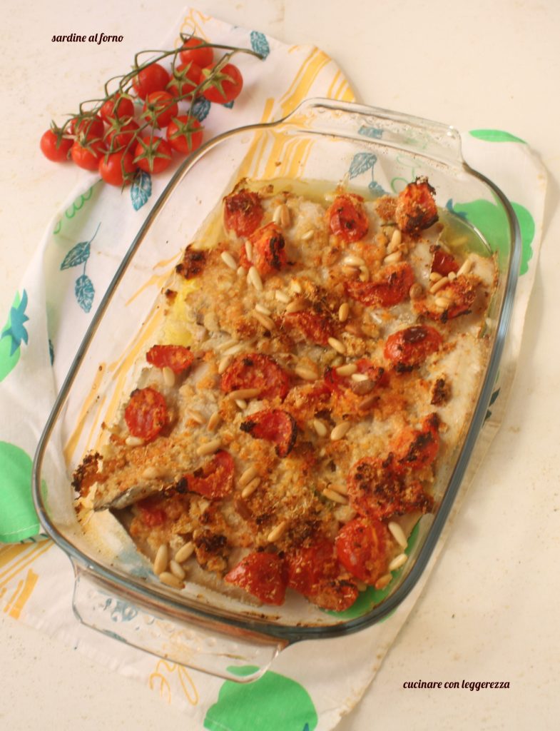 Haben Sie sie schon einmal im Ofen probiert? Ich habe mich entschieden, sie so zuzubereiten und mit einer Mischung aus Brot und geriebenem Käse, Kirschtomaten und Pinienkernen zu würzen.