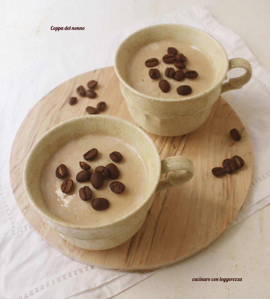 Ich habe den Opa’s Becher mit Kaffeebohnen garniert, aber man kann auch Schokoladentropfen verwenden.