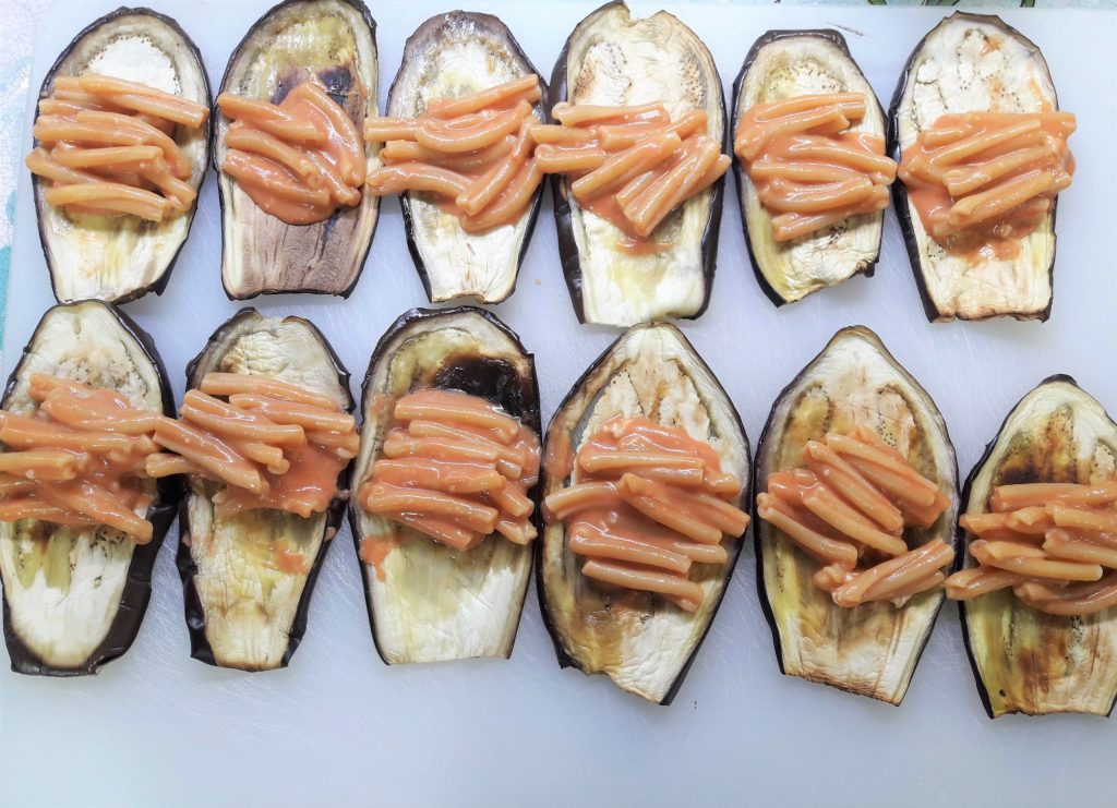Nun sind die Auberginen fertig, nehmen Sie sie aus dem Ofen und lassen Sie sie abkühlen, während wir die Sauce zubereiten.