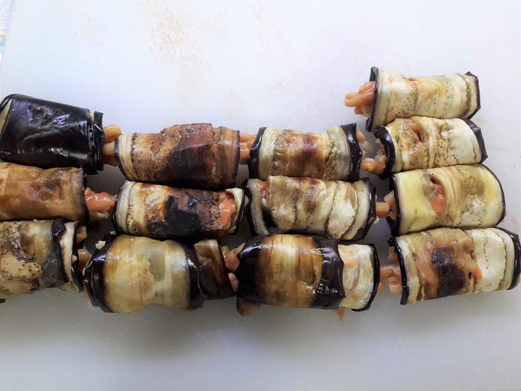 Im Herzen Siziliens gab es eine Adelige namens Anna Tasca Lanza, die leidenschaftlich für das Essen war und das Glück hatte, die kulinarischen Experimente der von den Bourbonen importierten Küche mitzuerleben, die sich stark von der sizilianischen Bauernküche unterschied, da sie Butter und nicht Öl verwendeten, inspiriert von der französischen Küche und dann von der Kreativität der Sizilianer neu interpretiert. Aus der Verschmelzung dieser beiden Welten entstehen die Rezepte der Hausmannskost der sizilianischen Aristokratie, bestehend aus Auberginenrollen, gefüllt mit Béchamel. Heute liegt es an uns, leidenschaftlichen Köchen, diese Gerichte neu zu interpretieren und sie den Anforderungen des modernen hektischen Lebens und vor allem einer bewussteren Ernährung anzupassen. Ich werde die Auberginen nicht frittieren, sondern im Ofen zubereiten.