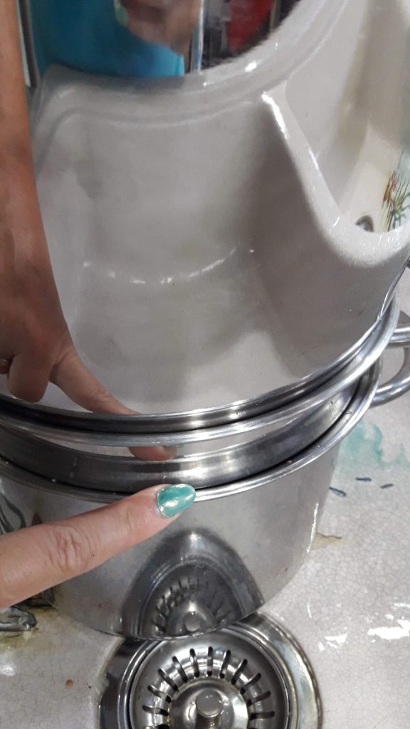 Für diese Menge habe ich den Topf verwendet, in dem ich Pasta koche, aber es könnte auch ein beliebiger Plastikbehälter sein,