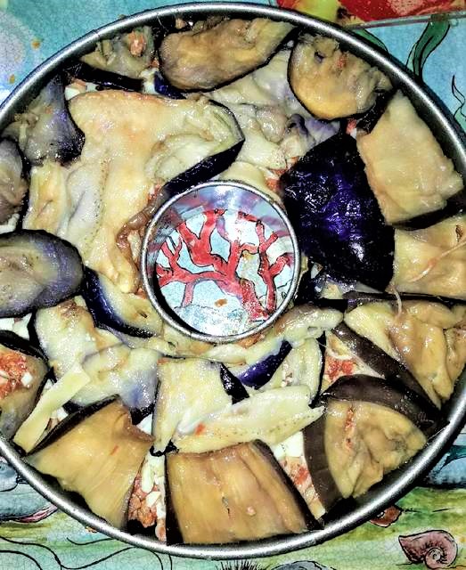 Der Auberginen-Nudelring mit Wurst ist fertig