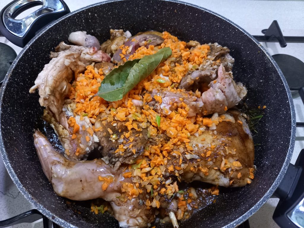 Ich werde Ihnen zeigen, wie man das Kaninchen in der Pfanne kocht und anschließend wie ich es mit dem Bimby zubereite.