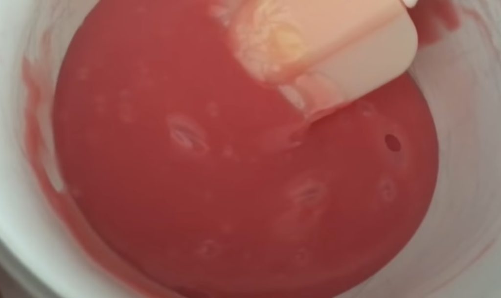 Dann rühren Sie, bis sie geschmolzen ist, wenn sie mit den ersten 40 Sekunden nicht schmilzt, versuchen Sie es erneut, bis sie vollständig flüssig ist. Nun, da die Mischung geschmolzen ist, können Sie den Rest des Erdbeer-Pürees, den Sie beiseite gelegt hatten, hinzufügen. Rühren Sie um und stellen Sie beiseite.