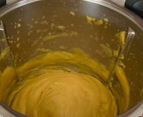 Nun, da der Vorteig bereit ist, den Schmetterling aufsetzen und im Mixtopf die Eier mit dem Zucker 3 Min. bei Stufe 4 aufschlagen