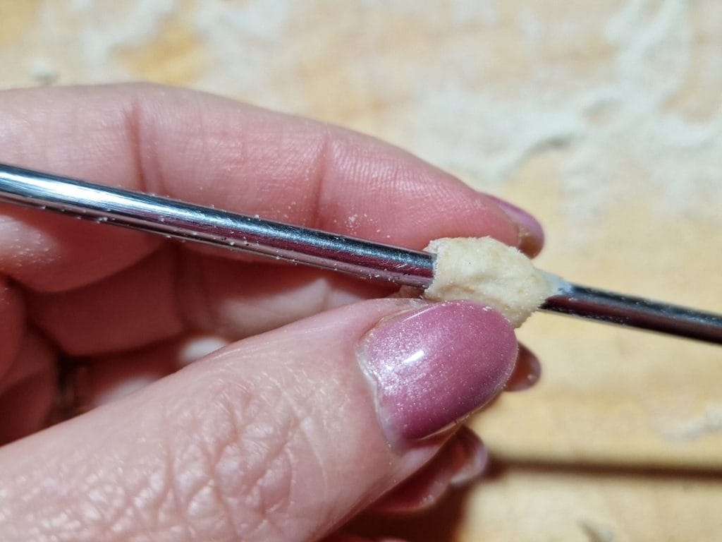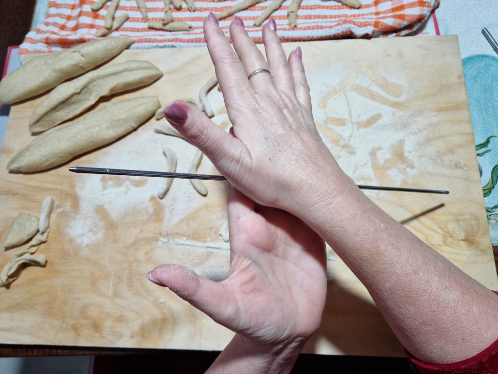Nach der Ruhezeit bereiten Sie den Buso vor, also den Draht für die Busiate und das Nudelholz