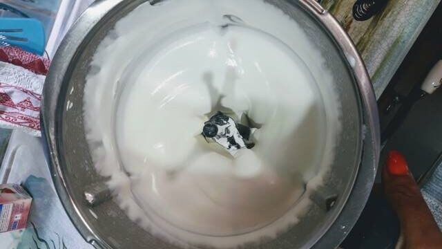 • Das erste, was zu tun ist, ist die Sahne mindestens 15 Minuten lang in den Gefrierschrank zu stellen.