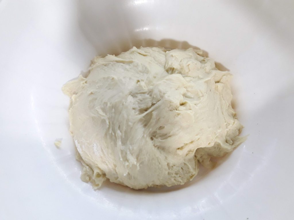 Ihr werdet feststellen, dass der Teig etwas klebrig ist. Perfekt, so muss er sein.