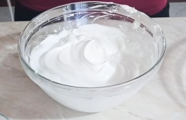 Sobald das Eiweiß steif ist, entfernen Sie den Schmetterling und geben das steifgeschlagene Eiweiß in eine Schüssel und stellen es beiseite.