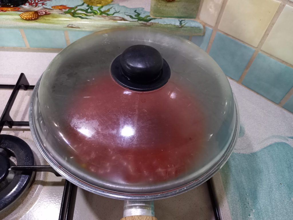Fügen Sie die Passata und ein halbes Glas Wasser hinzu, dann..