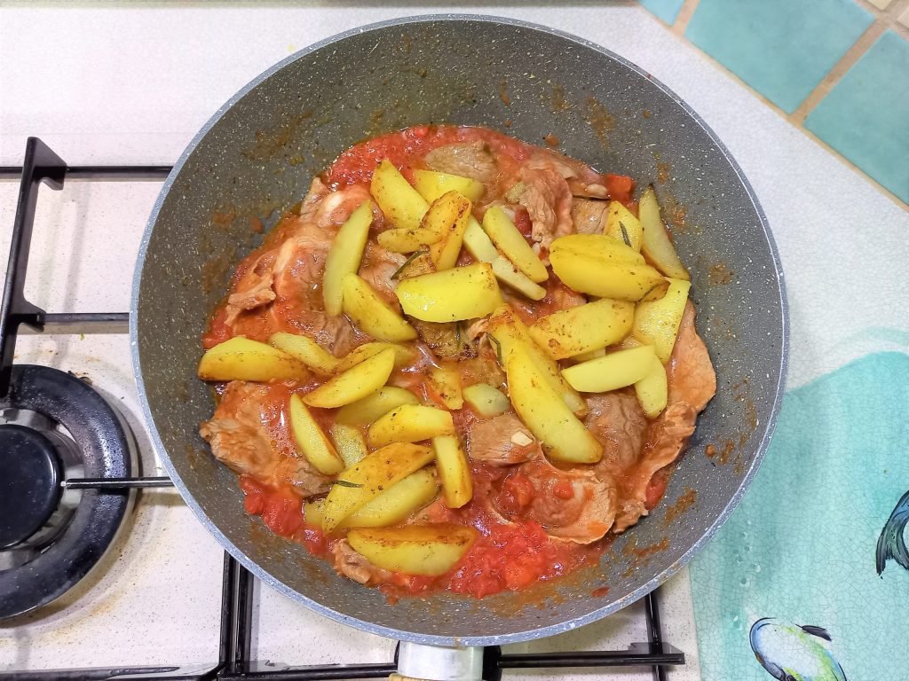 Hier haben wir zusammen Fleisch alla pizzaiola mit aromatischen Kartoffeln zubereitet.