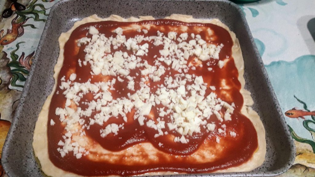 Ich erinnere Sie daran, dass, wenn Sie eine hohe und weiche Focaccia möchten, Sie ihn auf 2 Backbleche teilen müssen, wenn Sie im Gegenteil einen dünnen und leicht knusprigen Teig bevorzugen, teilen Sie ihn auf 3 Backbleche.