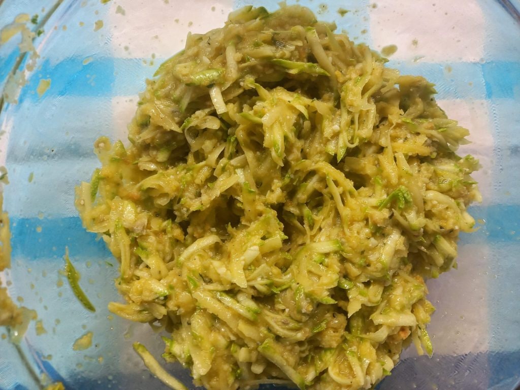 Gefüllte Zucchini- und Kartoffelpuffer. So gefüllt können sie bis zu 3 Tage im Kühlschrank aufbewahrt werden