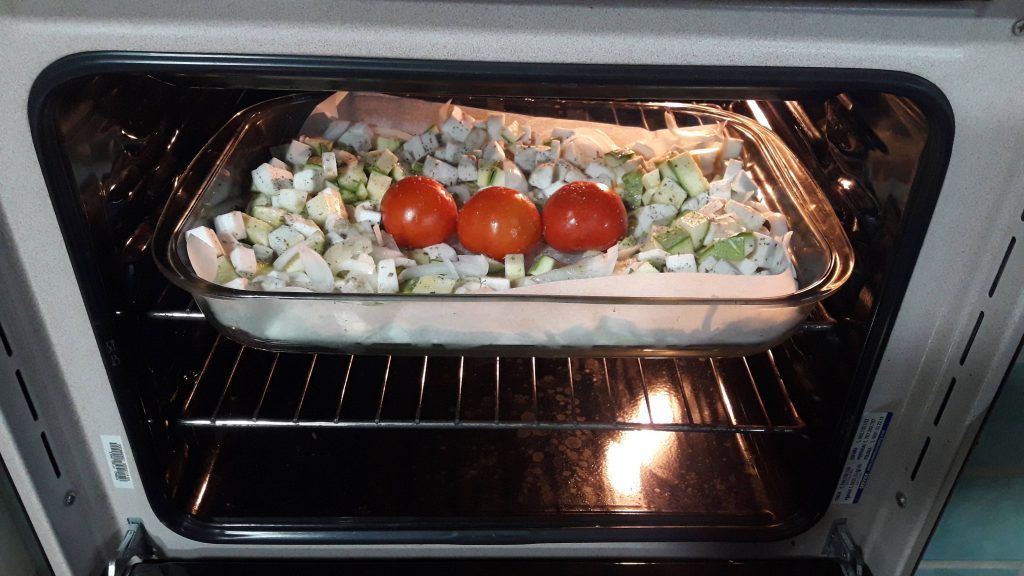 • Sobald das Gemüse gar ist, lasse es 5 Minuten im Ofen ruhen.