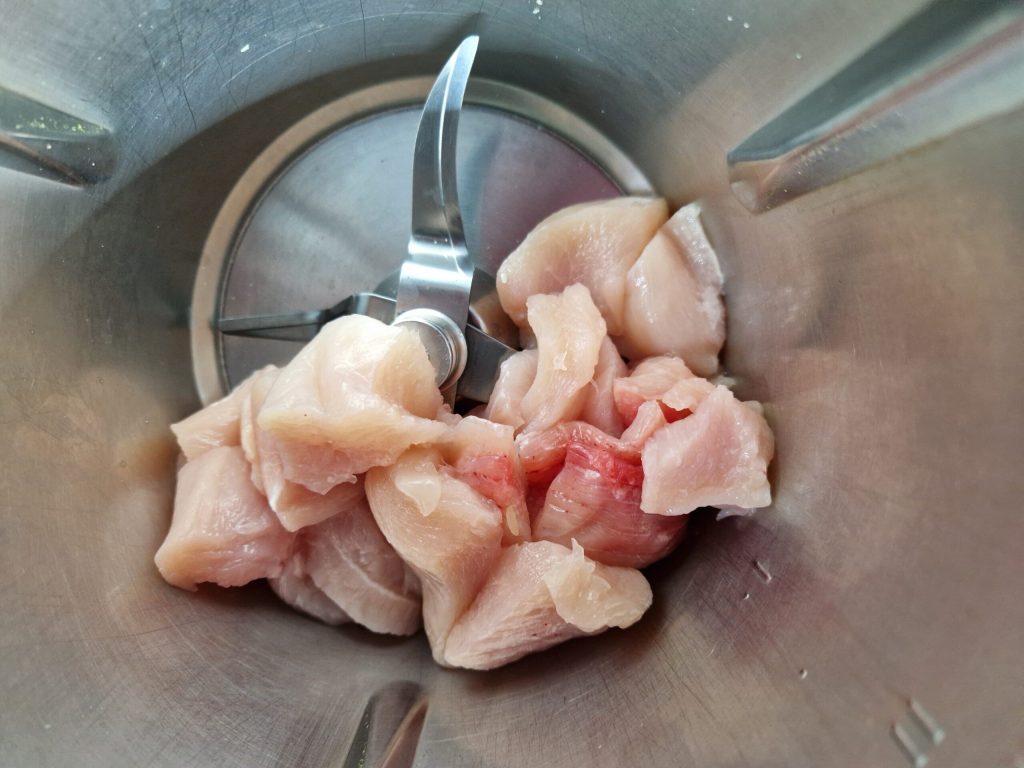 Es genügt rohes Hähnchenbrustfleisch, aber auch wenn Sie Reste von gekochtem oder gegrilltem Fleisch haben.
