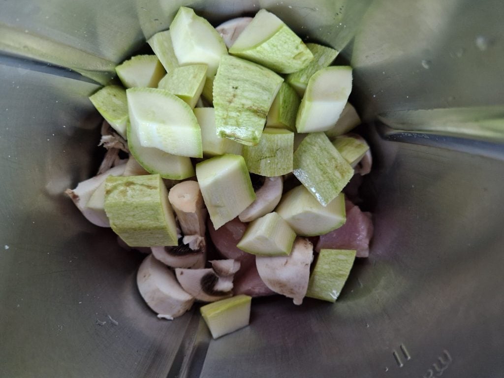Die Hähnchen- und Gemüseburger habe ich diesmal mit Zucchini und Pilzen gemacht, aber neulich habe ich sie sogar mit tiefgekühltem Gemüsemix zubereitet. Ein echter Tipp für alle Mütter.