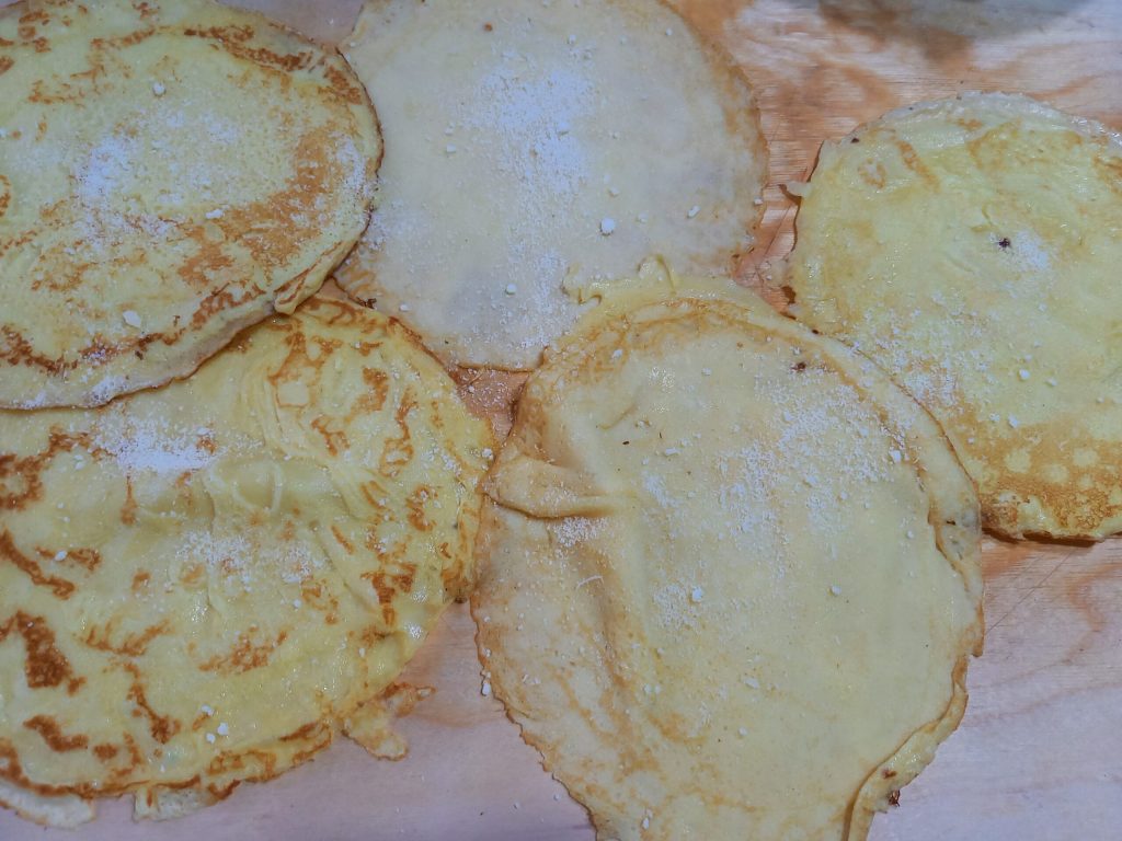 Verteilen Sie die Crêpes auf der Arbeitsfläche und bestreuen Sie jede Crêpe mit Parmigiano Reggiano