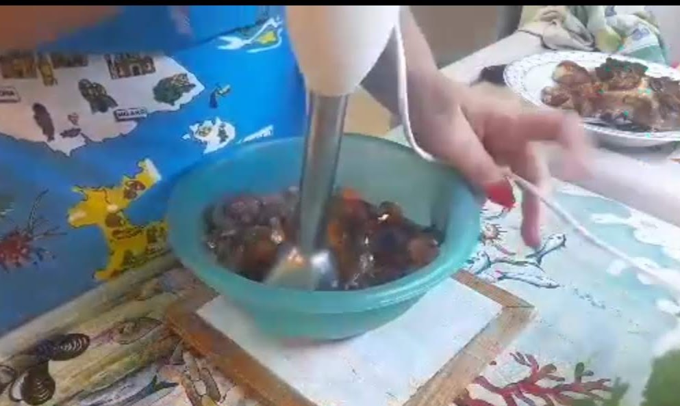 Nach der Garzeit die Knochen und Abfälle vom Gemüse entfernen