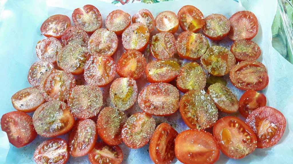Nach diesen Minuten lassen Sie das überschüssige Öl ab und fügen die confierten Kirschtomaten hinzu, mischen Sie und….