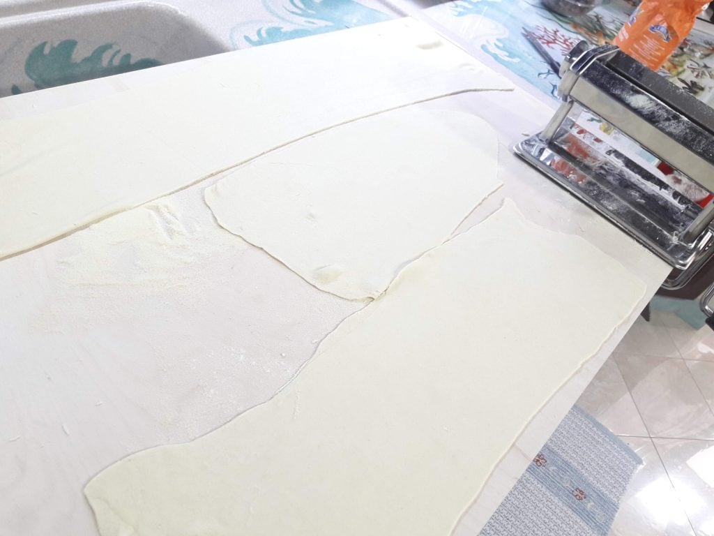 • Ravioli formen: Nehmen Sie nun den Teig und machen Sie mit Hilfe eines Nudelholzes oder einer Nudelmaschine dünne Schichten.