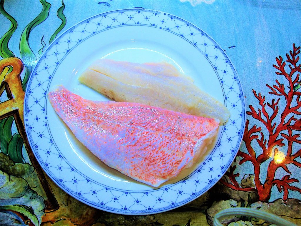 Heute wollte ich dieses Gericht kreieren, mit dem Gedanken an meine Diät. Denn der Rotbarsch hat zartes Fleisch und ist fast fettfrei, und Zucchini, das muss man nicht erst sagen, sind eines der kalorienärmsten Gemüse, die ich kenne. In diesem Gericht, gut kombiniert mit den Kirschtomaten, bieten sie auch für figurbewusste Genießer den richtigen Genuss.