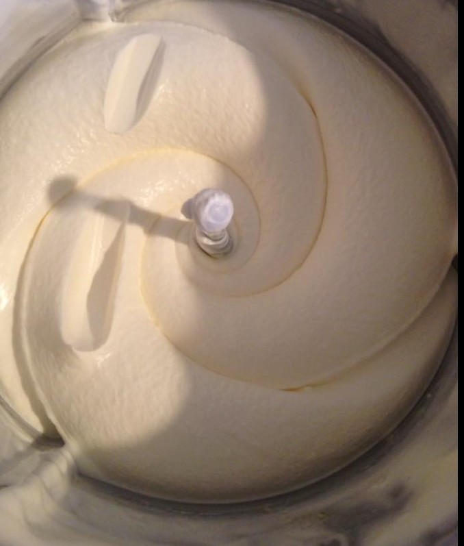 Inzwischen die Sahne aus dem Kühlschrank für 30 Minuten ins Gefrierfach stellen. Zucker und Vanillin hinzufügen und mit dem Schneebesen oder in der Küchenmaschine aufschlagen.