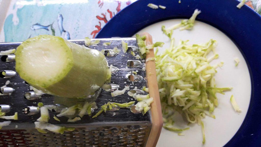 Jetzt waschen Sie die Zucchini, entfernen die Enden und reiben sie.