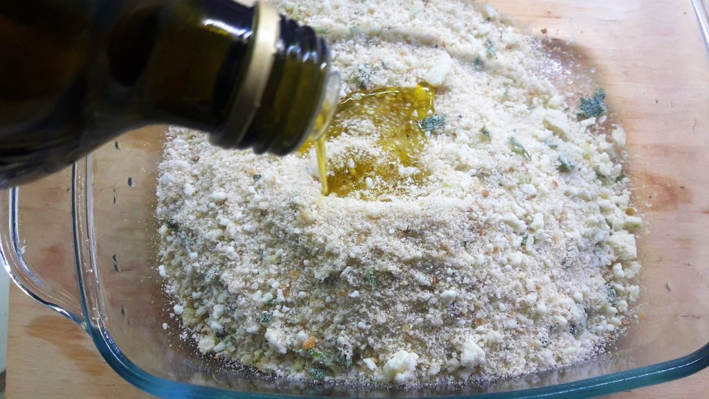 Jetzt bereiten wir die Füllung vor. Die Basis ist das sizilianisch gewürzte Paniermehl. Um das Rezept zu sehen, klicken Sie hier.