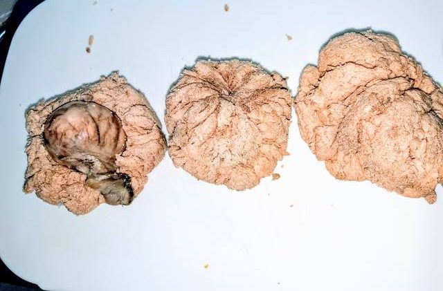 Dies ist ein Stück des Eierstocks des Schwertfisches, darin sind Tausende von Eiern enthalten.
