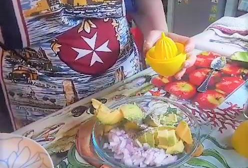 Guacamole-Sauce. Wir beginnen mit dem Schälen der Zwiebel, wir verwenden etwa die Hälfte. Spüle sie dann ab, damit deine Augen nicht brennen.