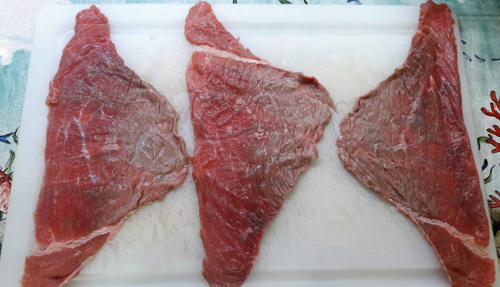• 6 Scheiben Rindfleisch oder Kalbfleisch, Oberschale, Unterschale (sehr dünn geschnitten und sehr breit)