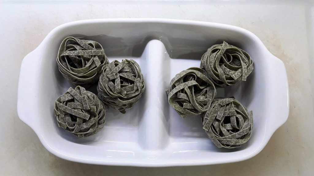 • und die im Ofen gebackenen grünen Tagliatelle-Nester.