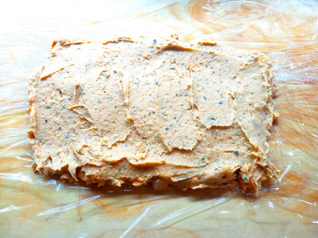 Die pürierte Masse mit einem Spatel zu einem Rechteck verstreichen.