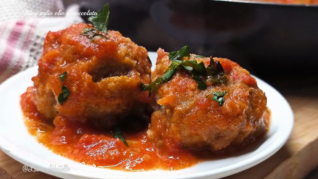 Formt die Bällchen und wälzt sie in den Semmelbröseln. Bratet die Zwiebel in einer Backform oder einer anderen bevorzugten Form mit Öl an, fügt das Tomatenfruchtfleisch hinzu, würzt mit Salz und kocht es etwa 6/7 Minuten, fügt die Bällchen hinzu und lasst sie mindestens 15 Minuten ziehen, indem ihr sie sanft wendet, und genießt sie dann.